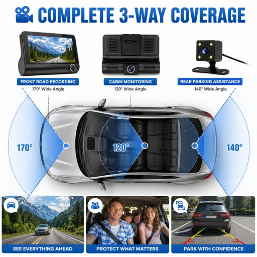 View full detailsDescription: Never miss an important moment on the road with this Full HD 3 Lens Dash Camera. Designed for complete coverage, this advanced dash ca...
